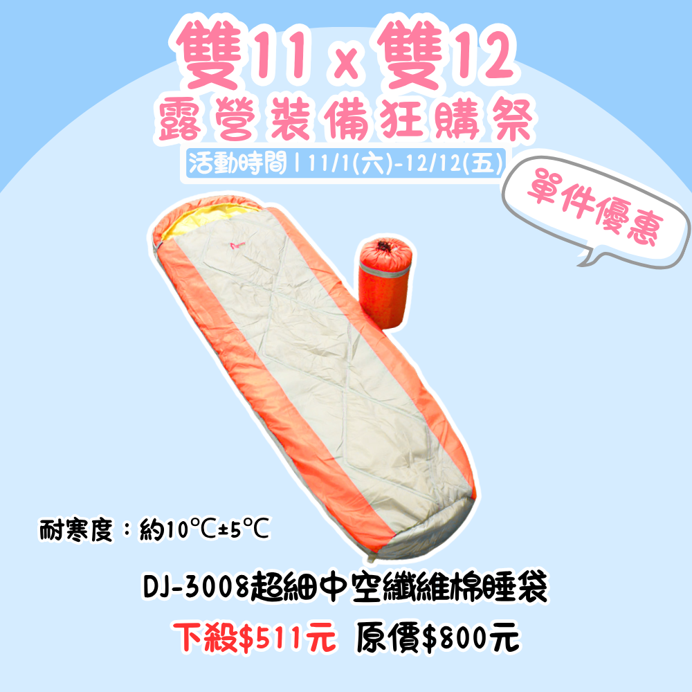 雙11X雙12,露營裝備狂購季 | DJ-9052 探險家舒適保暖睡袋/C5 單品優惠價『活動時間:𝟭𝟭/𝟬𝟭-𝟭𝟮/𝟭𝟮』