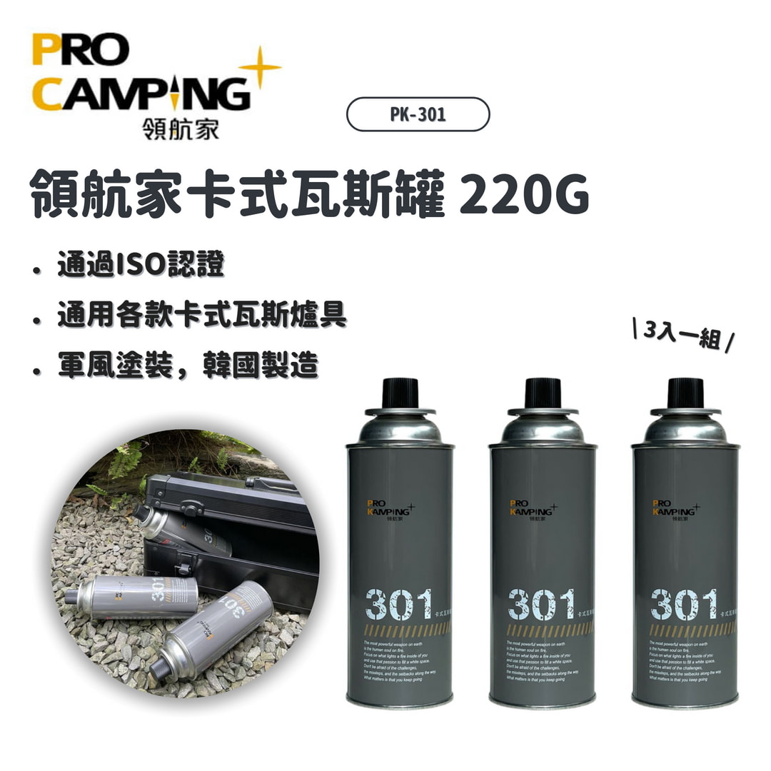 · 商品名稱:Pro Kamping 領航家 | PK-301 領航家卡式瓦斯罐220g(3罐)
