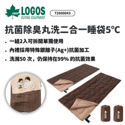 日本LOGOS | 72600043 抗菌除臭丸洗二合一睡袋5℃ | 1組2入可雙拼 寢具 |