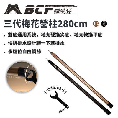 MBCF 露營狂 | 全新三代梅花營柱 220~280cm | 黑色、卡其限定色 | 快拆排水設計