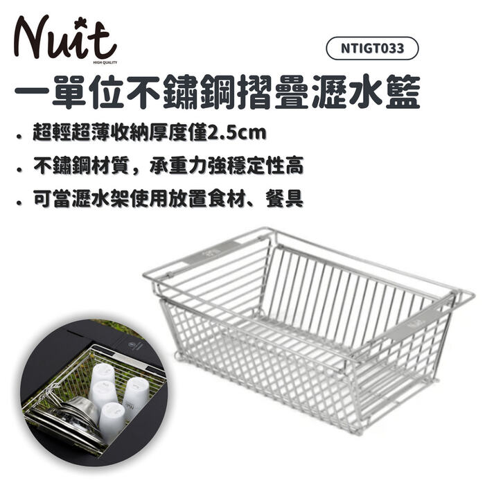.商品名稱:努特NUIT 一單位不鏽鋼摺疊收納籃